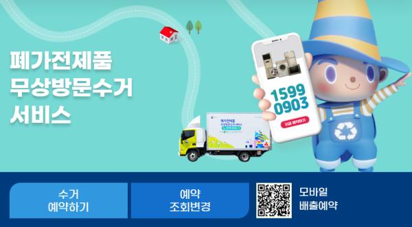 대형폐가전 무료수거 인터넷 홈페이지를 방문해서 수거 예약을 할 수 있습니다.